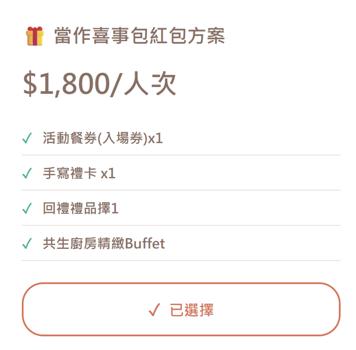 兌換物選擇: 購買含有「回禮禮品」方案的支持者,可依照您的需求與方案規定,選擇您喜歡的回禮禮品。